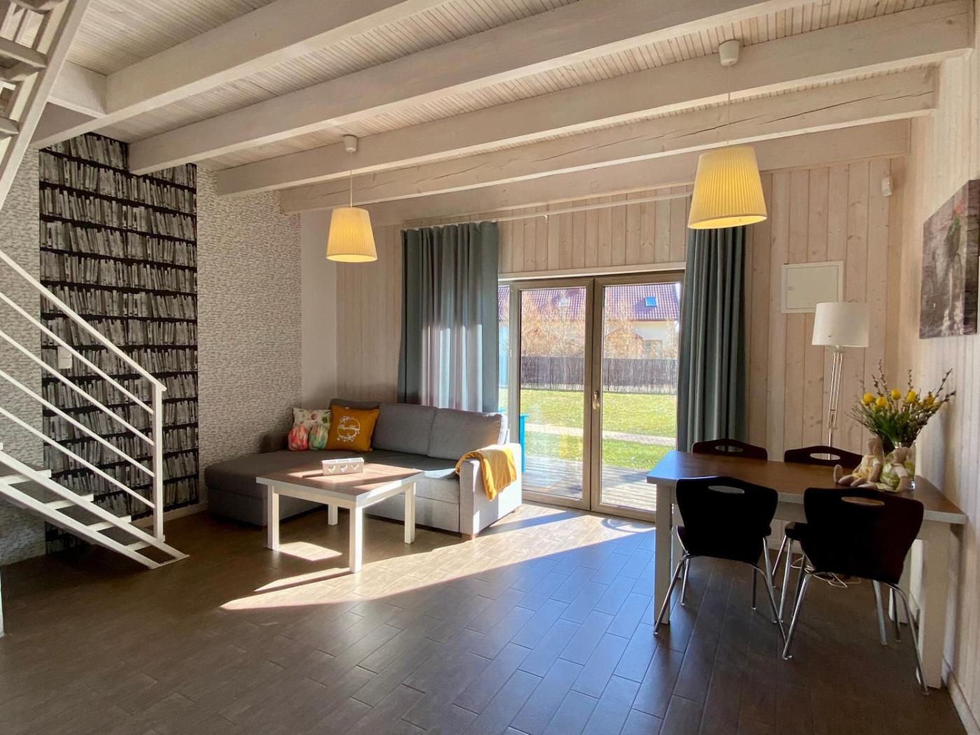 Dom z 2 sypialniami. The well-fitted kitchen features a stovetop, a refrigerator, a dishwasher and kitchenware. Featuring a terrace with garden views, this holiday home also provides a private entrance and a flat-screen TV. The unit offers 5 beds. Dom wakacyjny - 6 osobowy. Powierzchnia pokoju ok.: 80 mkw. ;