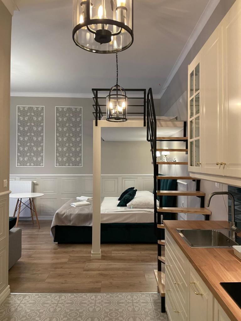 Rodzinny apartament typu Studio. Meals can be prepared in the kitchen, which comes with a stovetop, a refrigerator, kitchenware and a microwave. The studio offers an electric kettle, a sofa, a balcony with ancourtyard view as well as a private bathroom featuring a shower. The unit offers 1 bed. Studio - 2 osobowy. Powierzchnia pokoju ok.: 23 mkw. ;