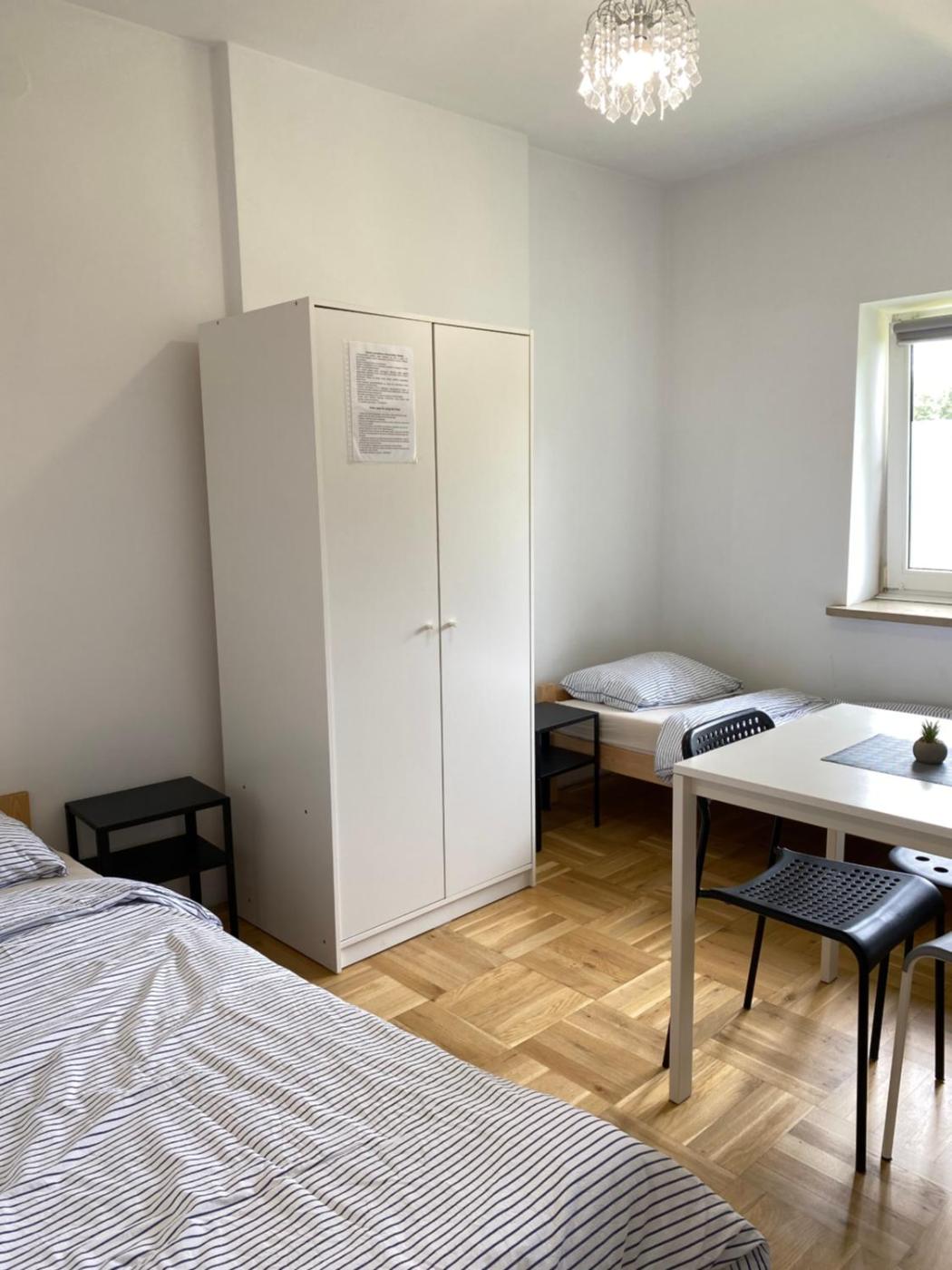 Pokój trzyosobowy z widokiem na ogród. The triple room provides a dining area, a wardrobe, as well as a shared bathroom featuring a shower and a hairdryer. The unit offers 3 beds. Pokój Trzyosobowy - 3 osobowy. ;