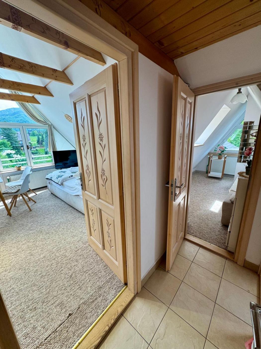 Studio z widokiem na góry. Guests can make meals in the kitchenette that is equipped with a stovetop, a refrigerator, kitchenware and a microwave. The studio provides a tea and coffee maker, a wardrobe, a balcony with garden views as well as a private bathroom featuring a bath. The unit offers 2 beds. Studio - 4 osobowy. Powierzchnia pokoju ok.: 20 mkw. ;